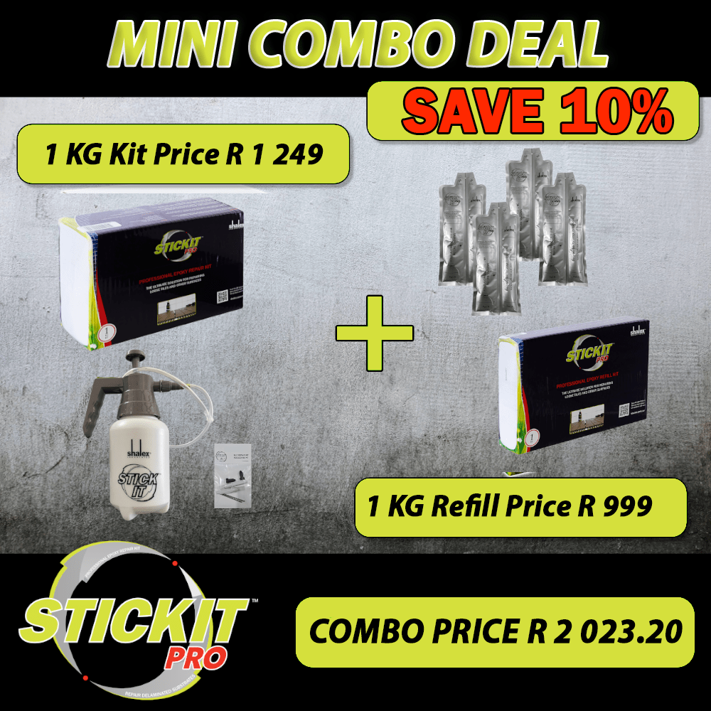 STICKIT PRO is a revolutionary two-part epoxy adhesive specifically designed to fix loose or drummy tiles without having to pull them up. Save thousands of Rands on costly tile replacement.